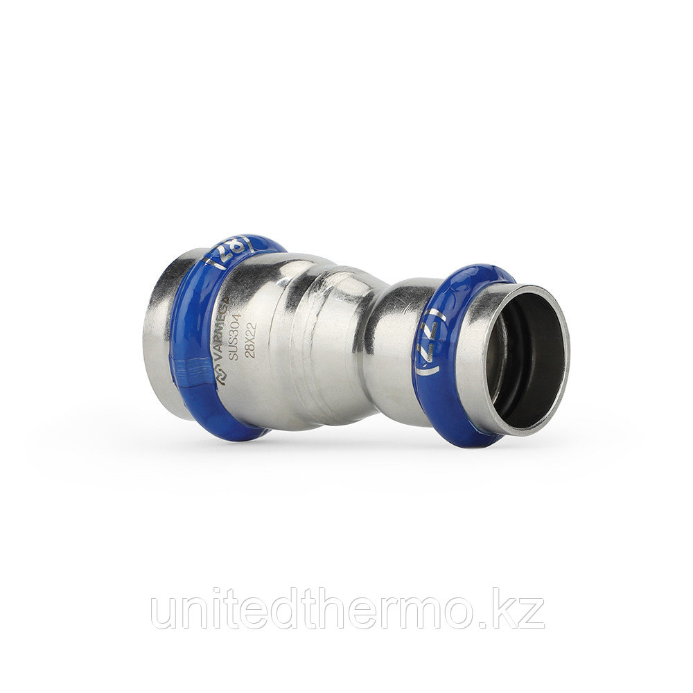 Муфта двухраструбная Varmega Inox Press переходная, используется для соединения труб разных диаметров. Для получения надежного неразъемного соединения трубы и фитинга потребуется специальный пресс-инструмент с насадками типа профиль «V».